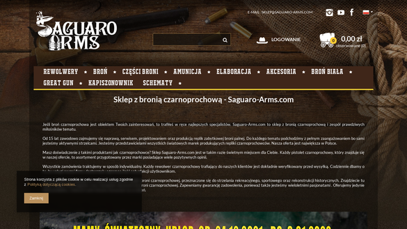 Sklep z bronią Saguaro Arms to przestrzeń, gdzie nabyć można czarnoprochowce. Sklep Saguaro-Arms.com może pochwalić się największym asortymentem re...